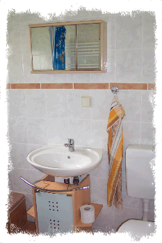 modernen Bad sind Dusche, WC und Fön neu installiert. |